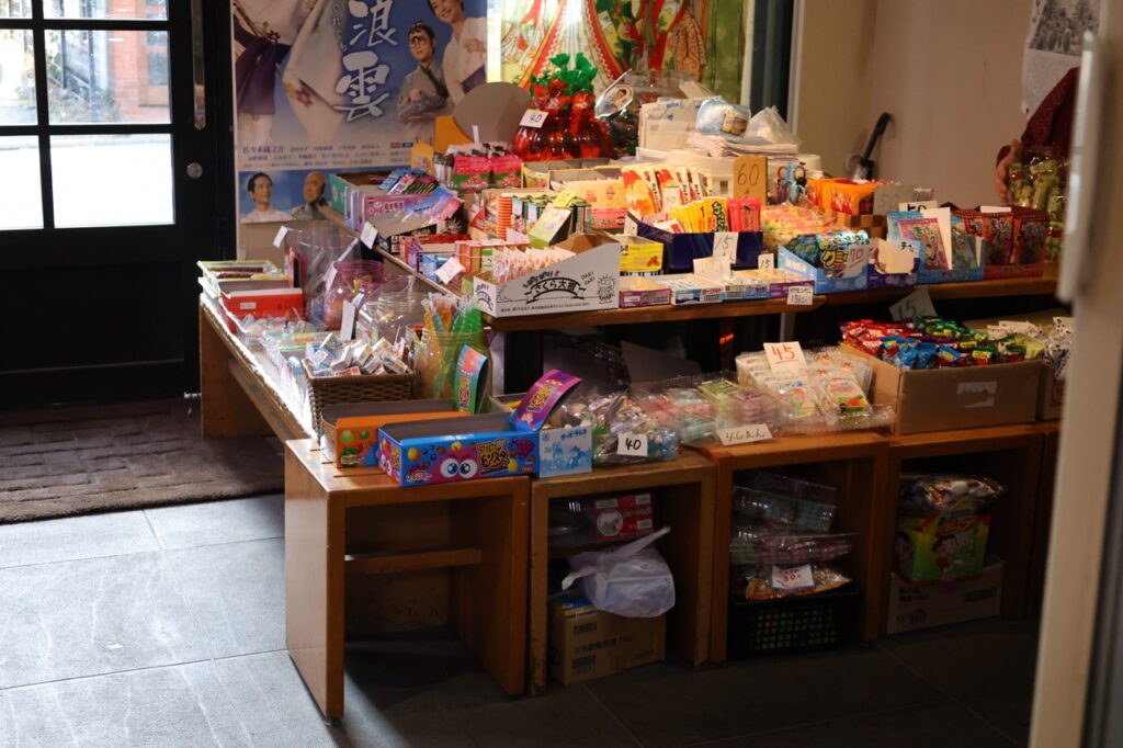 無料の休憩所の1階で駄菓子を提供しています。