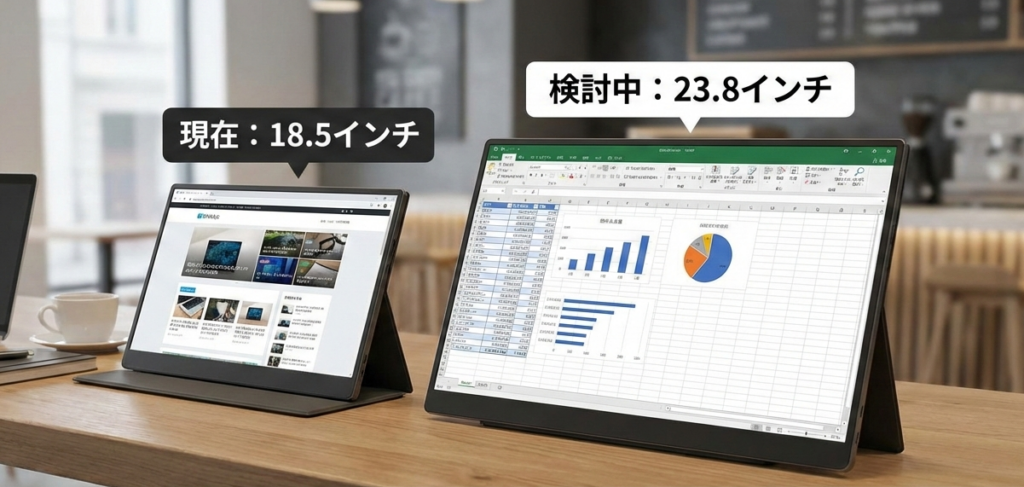 ただ、最近はもう少し大きなモニタが欲しくなってきました。