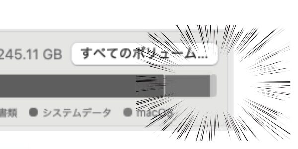 筆者のMac(M1 Mac mini)ですと作業を行う前は残り2〜3GBとなっておりました。一桁GBというのは非常によろしくない状況で、ブラウザを開いても頻繁に容量不足の警告が出ていました。MacのOSのアップデートも無視し続けている始末でした。