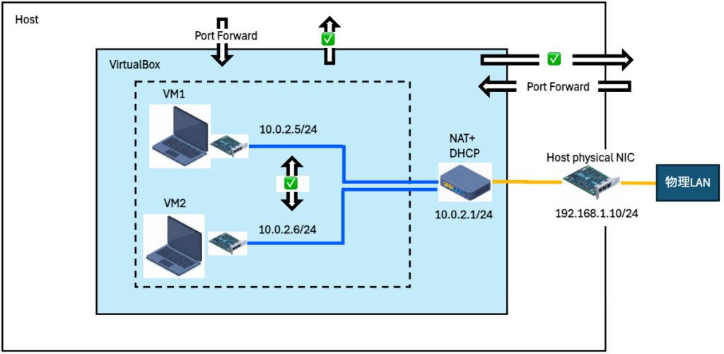 ✅ Host-only adapter経由✅ Host-only adapter経由✅ Host-only adapter経由✅ NAT経由